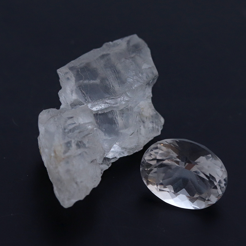透明度抜群の「天使の石」と呼ばれる石・ペタライトに丁寧にカットが施された良質なルースです。ペタライトはほとんどが塊状で産出され、結晶の形をしたものは小さな柱状結晶でカットできる宝石質の産出は極めて少ない稀少石です。小さな柱状結晶で壁開がある為、カットされたルースは非常に珍しく市場ではあまり見かけず、大きな結晶は稀少です。意識の目覚めを促すとされ、ヒーリング効果も高いことからヒーリングストーンとしては特に有名で重宝されています。透明度の高い原石もセットになっています。