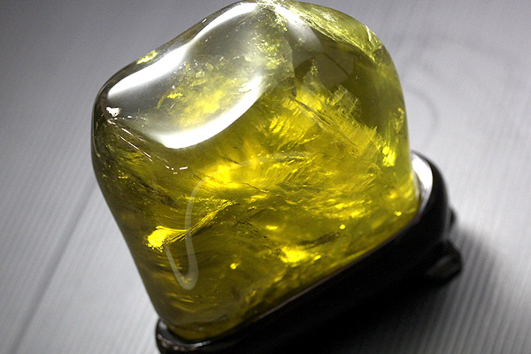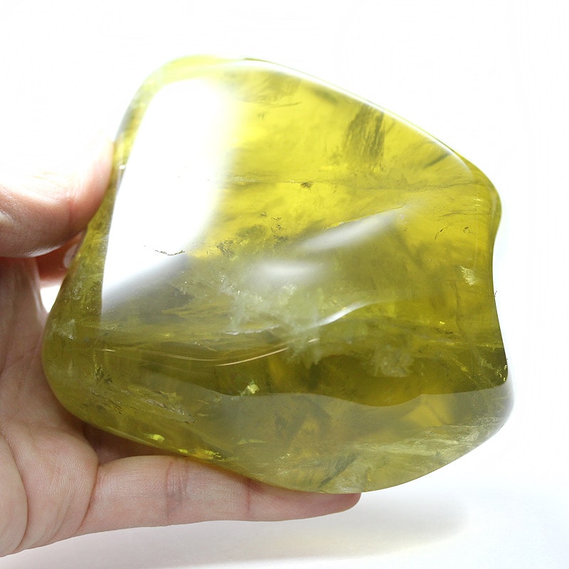 通常のレモンクォーツなどとは違う、少し深い感じのする緑がかったイエローはメタモルフォーゼスの特徴的な色ですが、優しくも有り、エネルギーの渦のようでもあり、不思議な魅力と胸がざわざわするような感じを覚える逸品です。