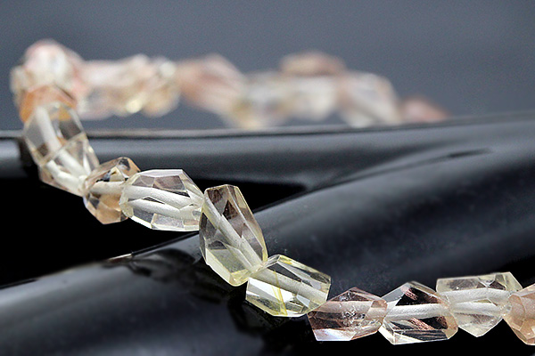 ラフカットと言えども、角のある多面的なカットを施していますので、キラキラとした輝きを放ち、丸ビーズを使用したブレスレットよりも上品に身に着けていただけます。