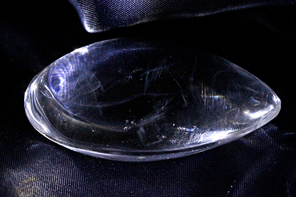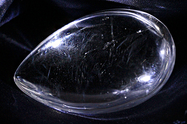 一見すると透明度が高い良質な水晶ですが、こちらの磨きは普通の水晶ではありません!強い光を当てると・・青白い幾筋もの線が現れます!このような水晶を「ブルーエンジェルラダー水晶」と呼びます。