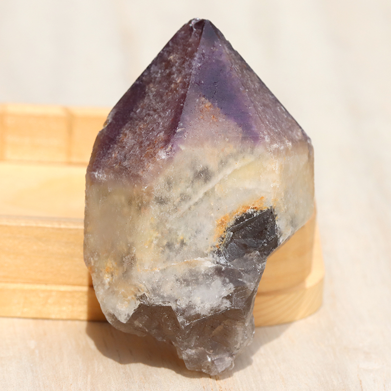 ほとんどの部分は美しい淡い色彩のアメジストなのですが、光の加減によって、少し黄色みを帯びるものもあります。