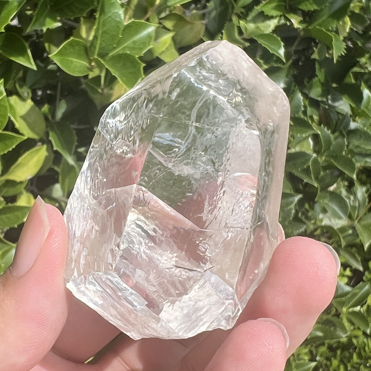 自然光やライトの下で見ると、結晶内部が淡くきらめき、