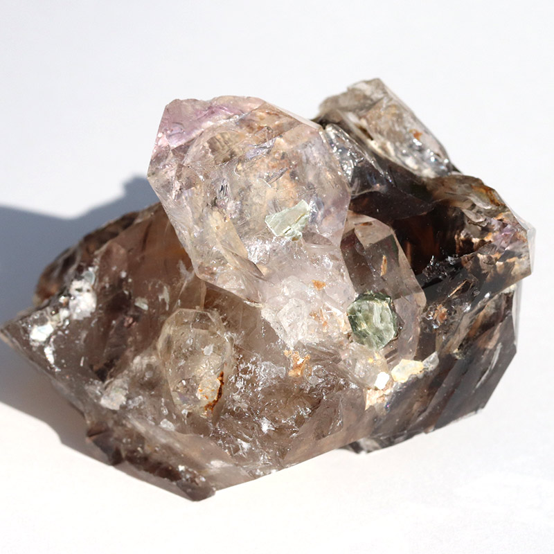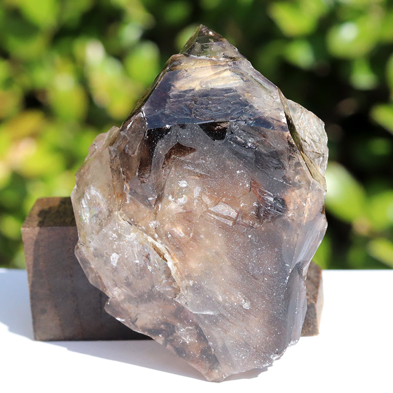 透明度共に抜群で、スモーキーカラーの濃淡が美しいエレスチャルタイプの原石です。