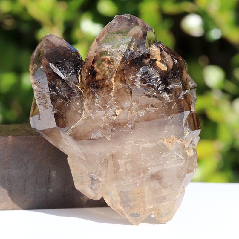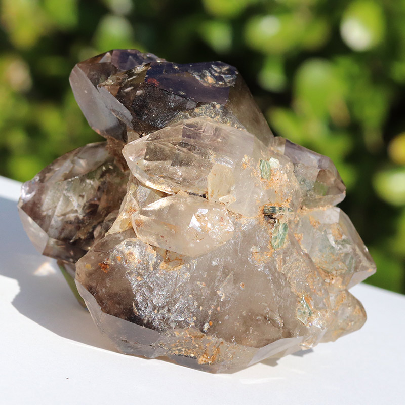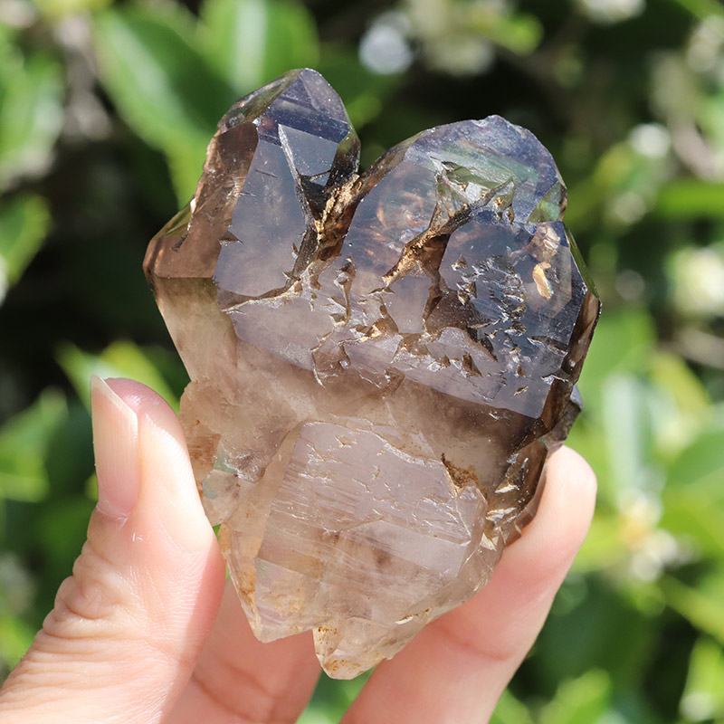 透明度共に抜群で、スモーキーカラーの濃淡が美しいエレスチャルタイプの原石です。