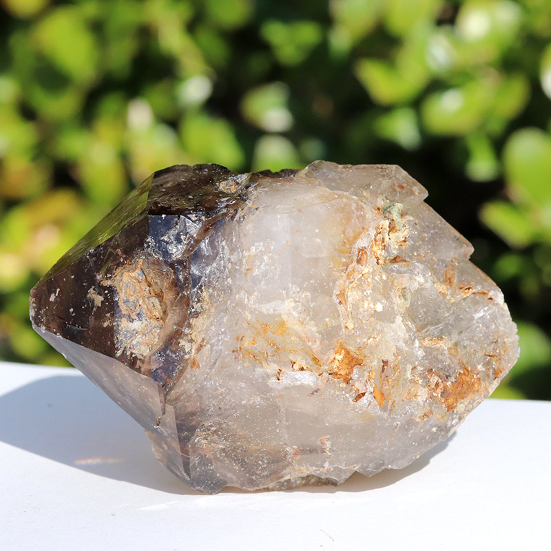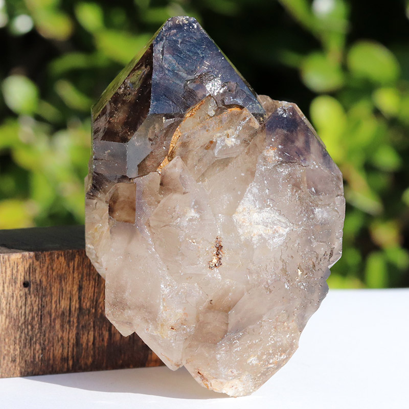 透明度共に抜群で、スモーキーカラーの濃淡が美しいエレスチャルタイプの原石です。