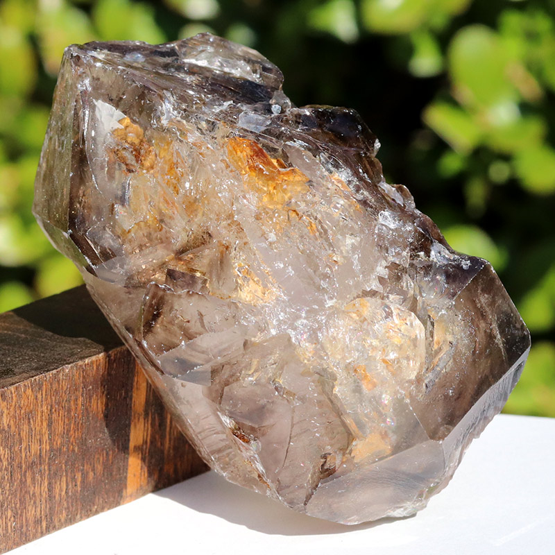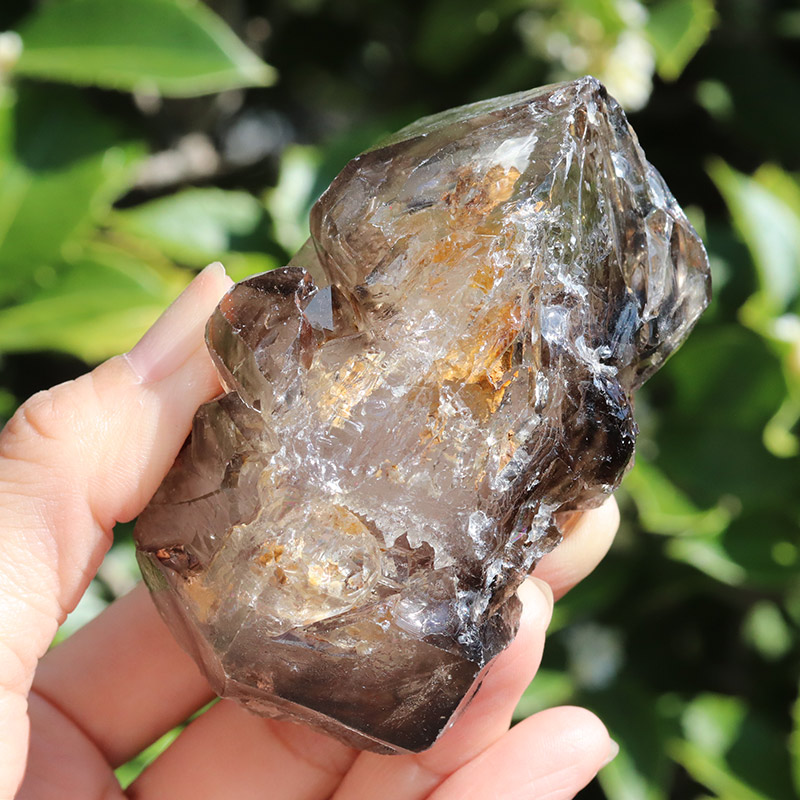 透明度共に抜群で、スモーキーカラーの濃淡が美しいエレスチャルタイプの原石です。
