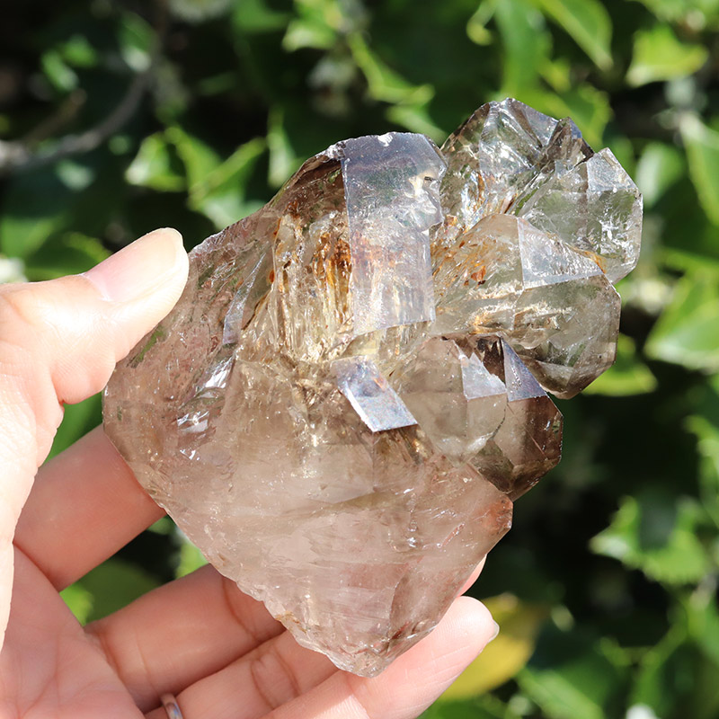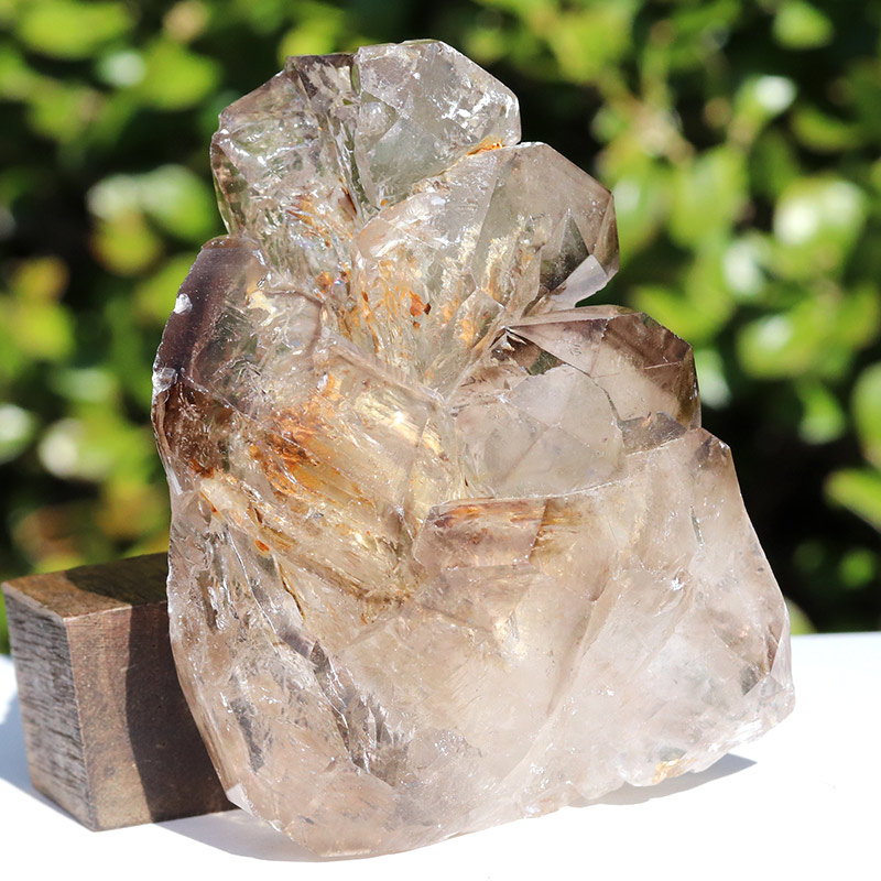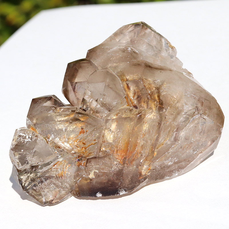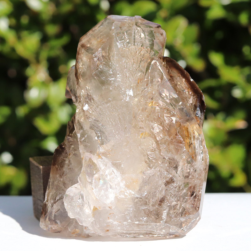透明度共に抜群で、スモーキーカラーの濃淡が美しいエレスチャルタイプの原石です。