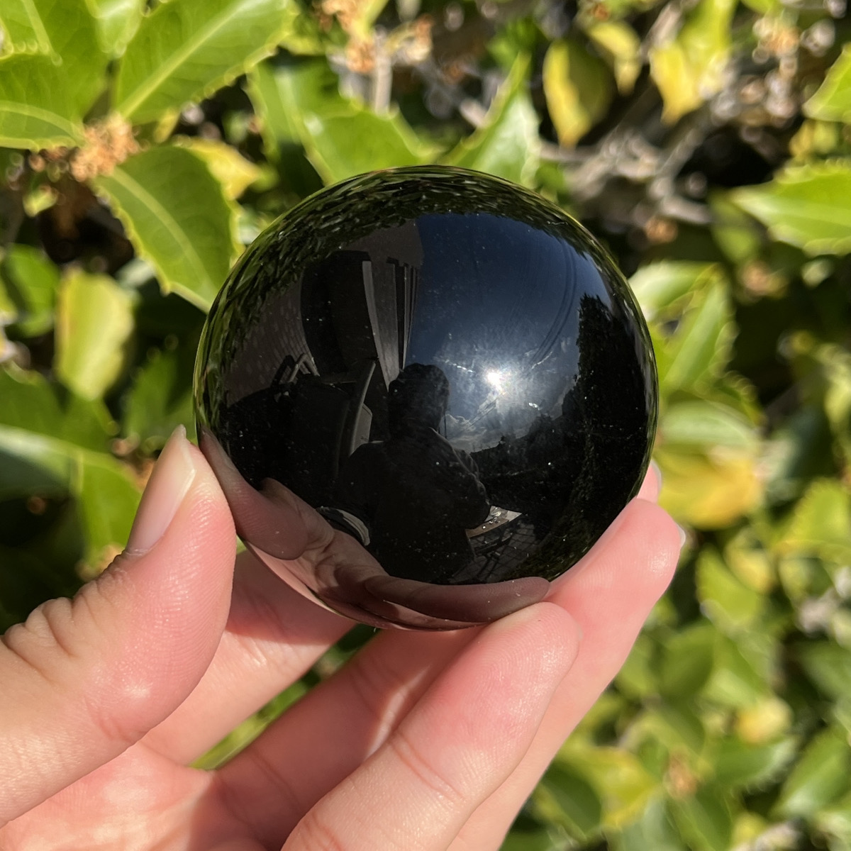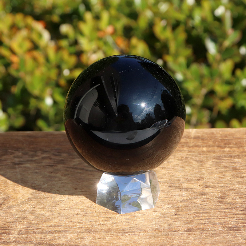 真っ黒なオブシディアン(黒曜石)の丸玉です。
