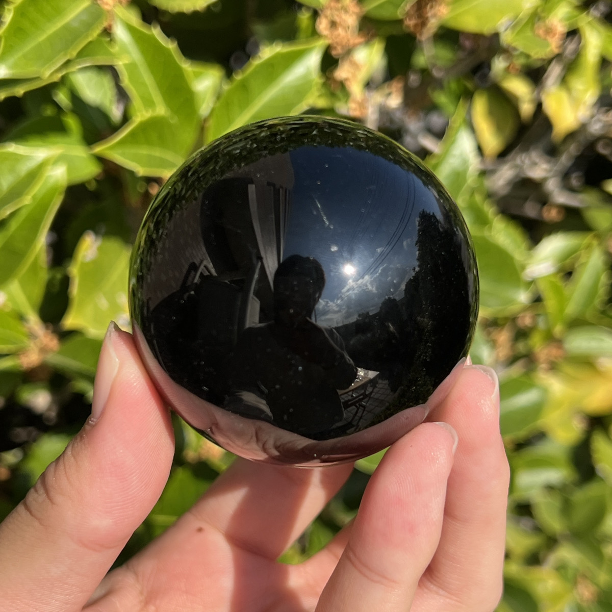 真っ黒なオブシディアン(黒曜石)の丸玉です。
