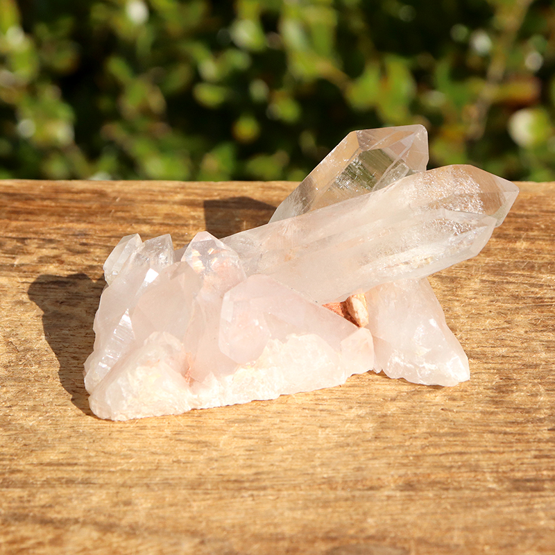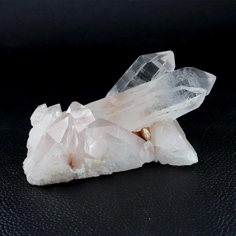 母岩が産地の赤茶色の土壌を含むためピンク色っぽく見えるモノや、イエロー・オレンジなど、様々なタイプの水晶クラスターが産出されます。