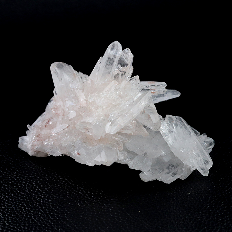 母岩が産地の赤茶色の土壌を含むためピンク色っぽく見えるモノや、イエロー・オレンジなど、様々なタイプの水晶クラスターが産出されます。
