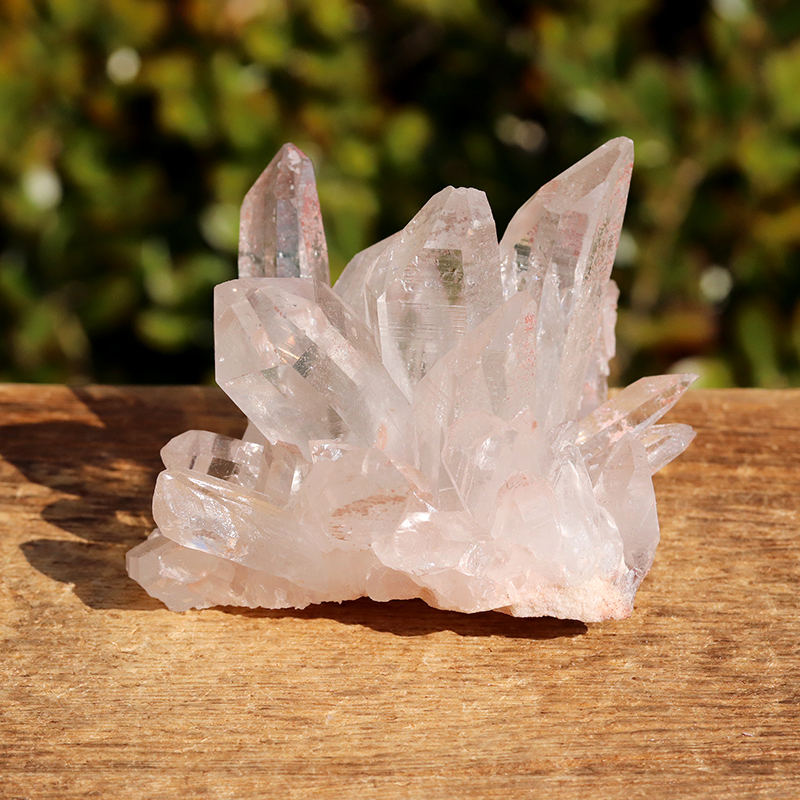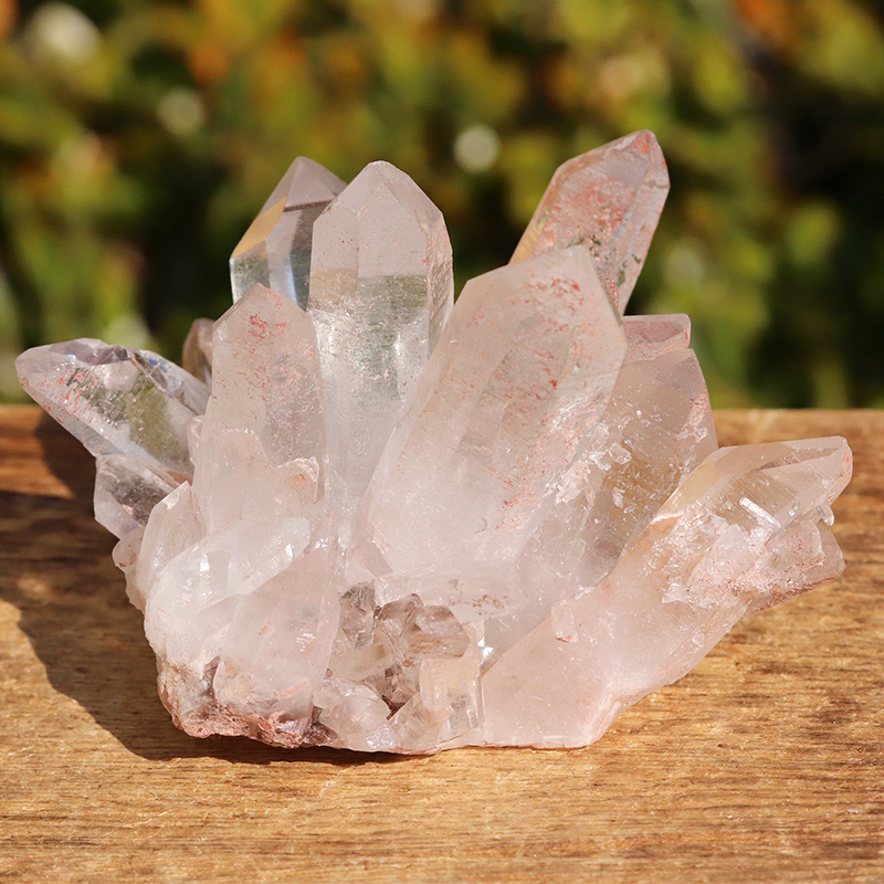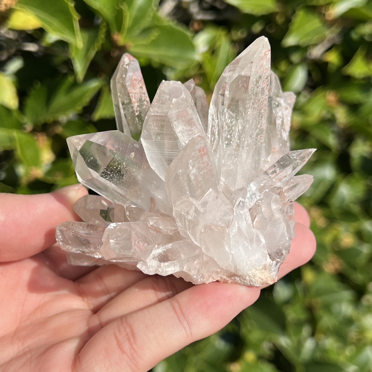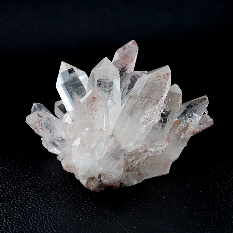 母岩が産地の赤茶色の土壌を含むためピンク色っぽく見えるモノや、イエロー・オレンジなど、様々なタイプの水晶クラスターが産出されます。