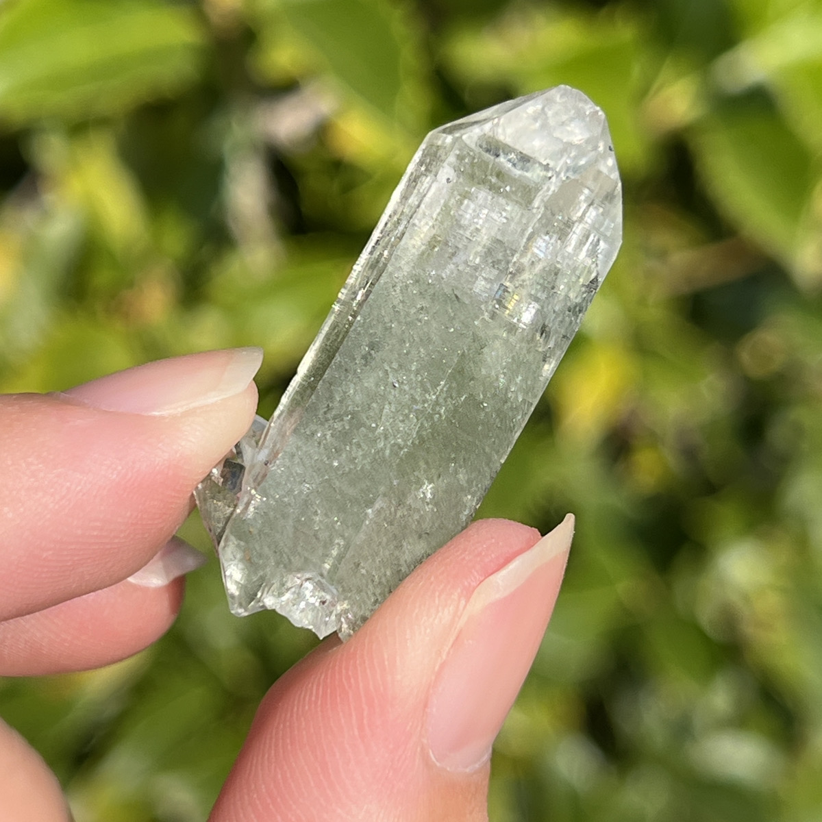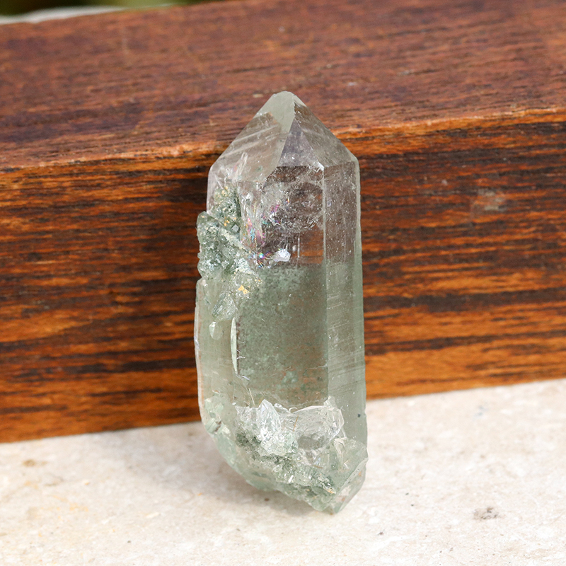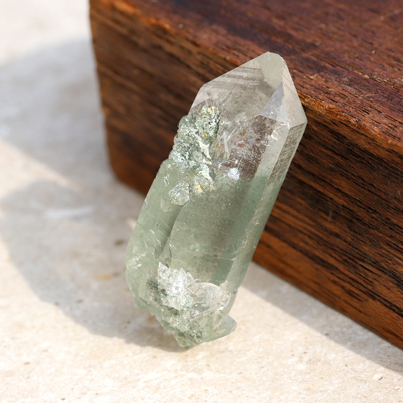 こちらの原石は緑色のクローライトが水晶の中に幻想的に混入しているクラスタータイプになります。
