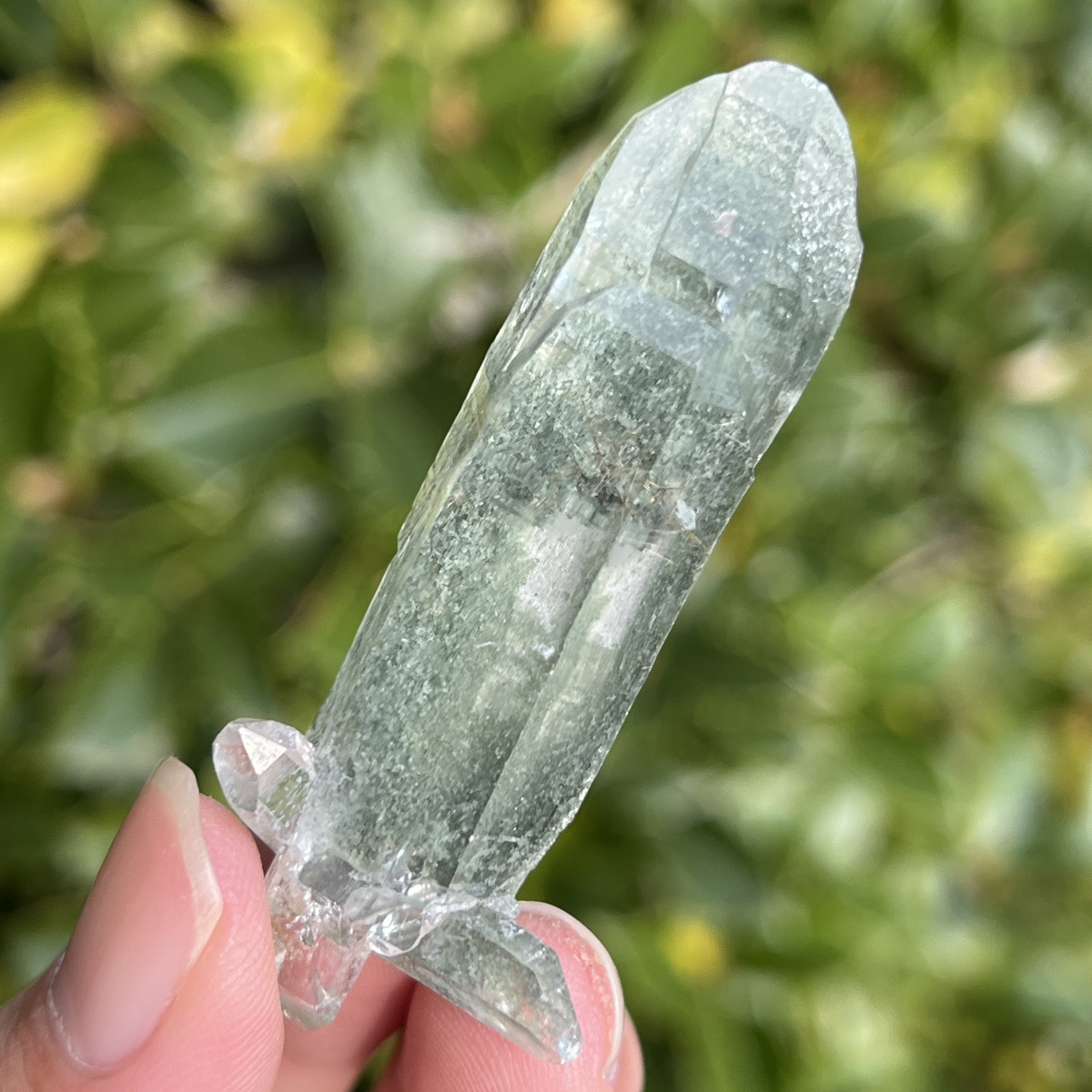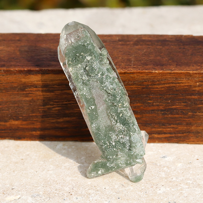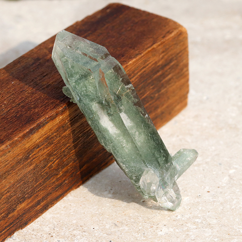 こちらの原石は緑色のクローライトが水晶の中に幻想的に混入しているクラスタータイプになります。
