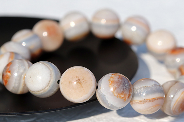 ほんわか温かみを感じさせる柔らかな色合いの天眼模様瑪瑙(アゲート)のブレスレットです。